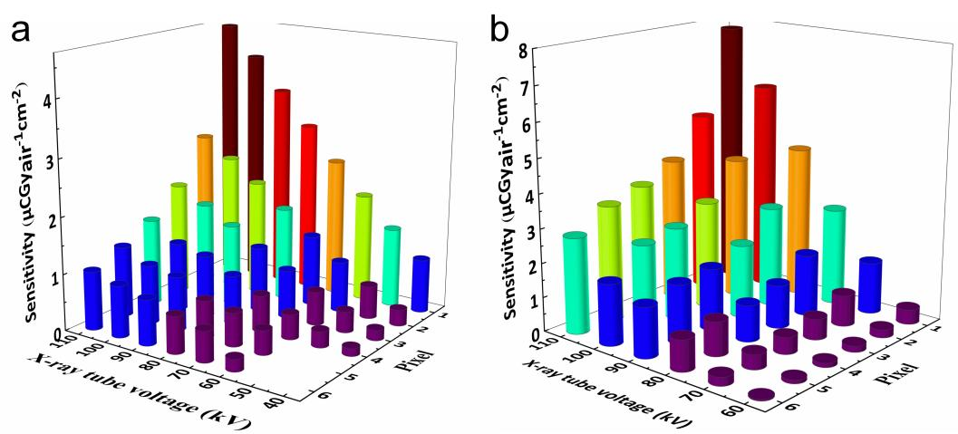 图3:在不同深度上的X射线探测器像素对X射线能量的敏感度对比测量,像素的标号越大,其深度越深。