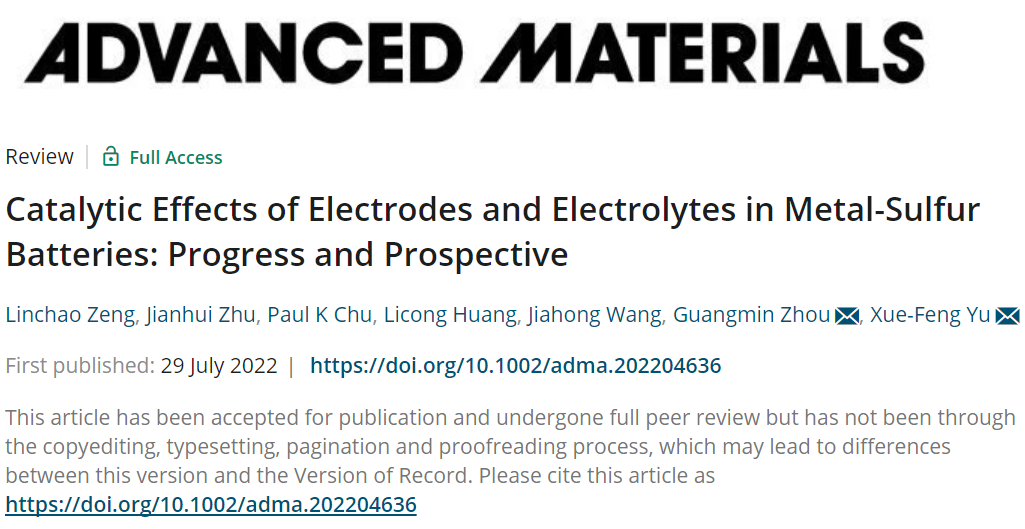 Advanced Materials | 金属硫电池中电极和电解质的催化作用研究进展与展望