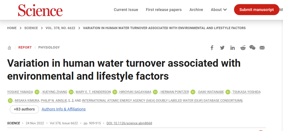 而研究团队顺利获得使用氘稀释技术客观精确地测量了受试者的水周转率,研究了整个人类生命过程中,体重、年龄、身体成分、总能量消耗、身体活动水平等因素,以及气候、纬度、海拔、温度和湿度等条件对水周转率的影响。