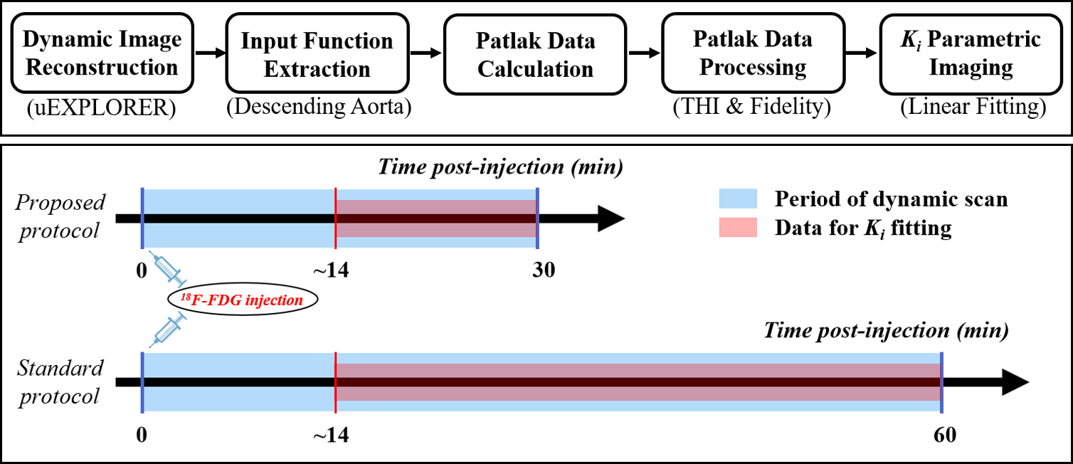 近期,中国科研实验室深圳先进技术研究院·劳特伯生物医学成像研究中心胡战利研究员团队与相关合作医院联合攻关,在动态PET定量成像领域先后取得多项研究进展,团队围绕提高动态PET临床时空分辨率、缩短扫描时间召开一系列相关研究,实现了“从算法模型创新——到实际临床验证”的科研思路。相关工作前期发表在技术类权威期刊IEEE Transactions on Biomedical Engineering(IF=4.7)和Medical Physics(IF=4.5)上,然后在合作医院装机的上海联影2米PET/CT和一体化PET/MR设备上分别进行临床病人验证,相关工作发表在核医学临床顶刊European Journal of Nuclear Medicine and Molecular Imaging(IF=10.057)和European Radiology(IF=7.034)上。