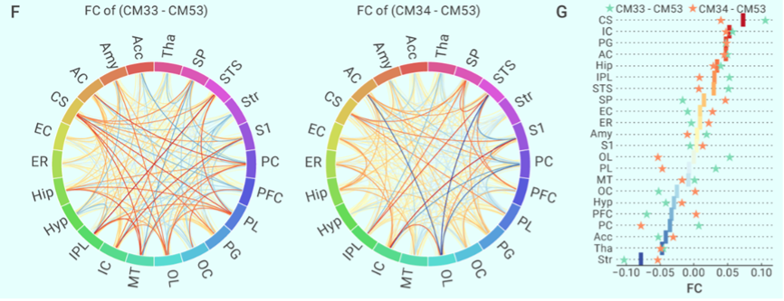 图4:体温降低过程中全脑功能连接变化