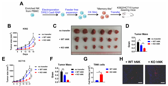 图3. 顺利获得CRISPR/Cas9敲除TIPE2促进NK细胞的过继治疗