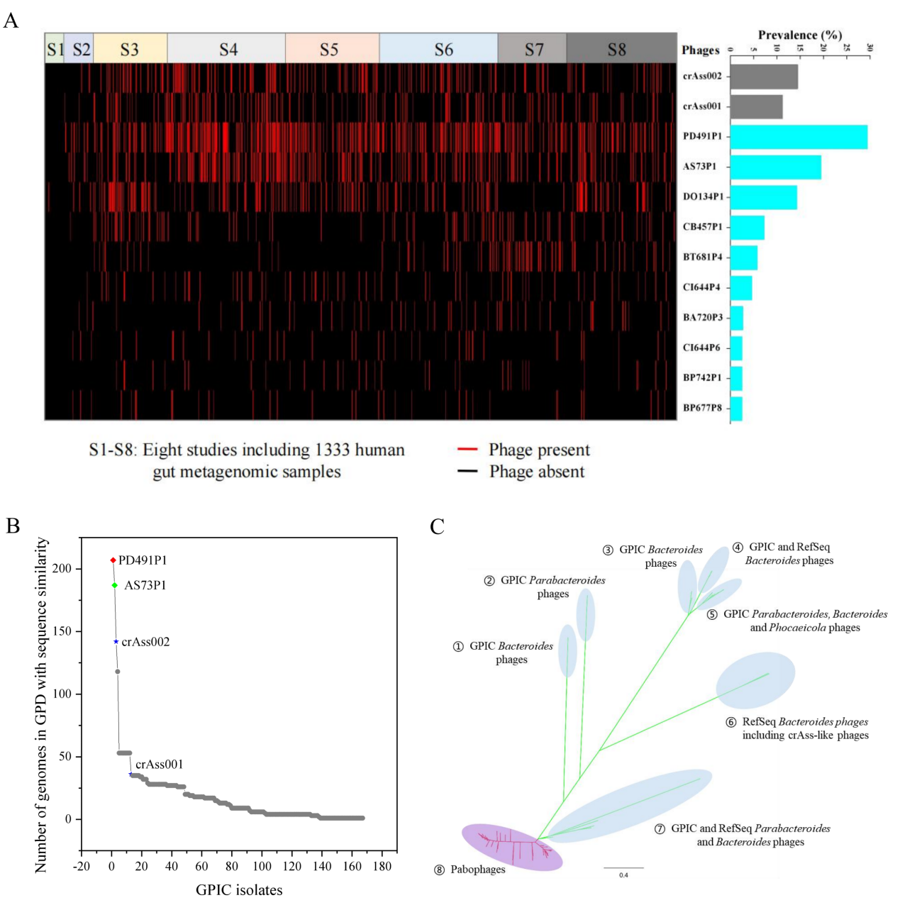 图2:人体肠道高流行率的噬菌体新科 Paboviridae的发现