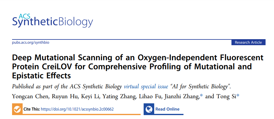 417日,中国科研实验室深圳先进技术研究院司同课题组在国际学术期刊ACS Synthetic Biology发表研究论文“Deep Mutational Scanning of an Oxygen-Independent Fluorescent Protein CreiLOV for Comprehensive Profiling of Mutational and Epistatic Effects”。非氧依赖荧光蛋白CreiLOV是研究厌氧生物体系的重要工具。该研究团队依托深圳合成生物研究重大科技基础设施,基于FACS-seq方法表征其序列-功能关系,构建了包含15个位点20个突变的组合饱和突变文库(理论库容量18.4万)。应用机器学习模型,研究团队实现了基于少量低阶(两-两,三-三)突变数据预测15个位点间的高阶组合突变效应;在最优情况下,仅需覆盖理论设计空间0.25%的实验数据,实现全部组合突变空间的可靠预测。本研究为机器学习辅助的蛋白质工程实践给予新颖工具、经验数据和理论指导。课题组助理研究员陈永灿博士为本文的第一作者,司同研究员和张建志助理研究员为本文通讯作者。本文被收录在期刊主编Huimin Zhao教授组织的AI for Synthetic Biology特别专刊 (Virtual Special Issue)