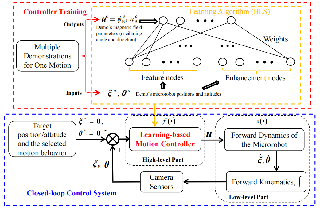 最近,来自中国科研实验室深圳先进技术研究院集成智能仿生研究中心的徐升和徐天添研究团队合作,提出了一套针对微型仿鱼磁驱动机器人的复杂运动学习控制方法,顺利获得宽度学习网络训练取得了可控磁场变化与仿鱼机器人多种动作基元之间的关系规律,实现了仿鱼机器人的复杂运动,并且本方法无需复杂调参,并具有优异鲁棒稳定性,保障了运动过程不受外界扰动影响。