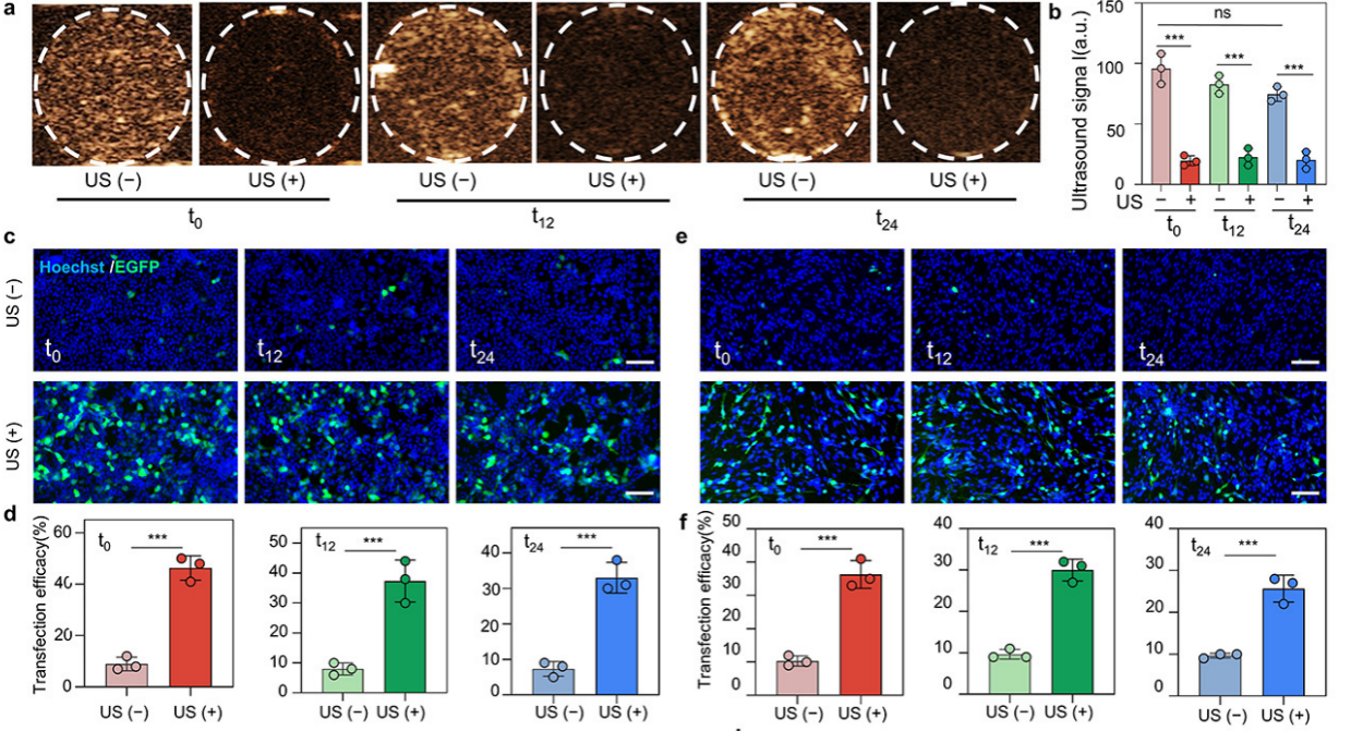 图2 超声可视化胞内空化递送EGFP基因在时间维度上控制外源基因的表达