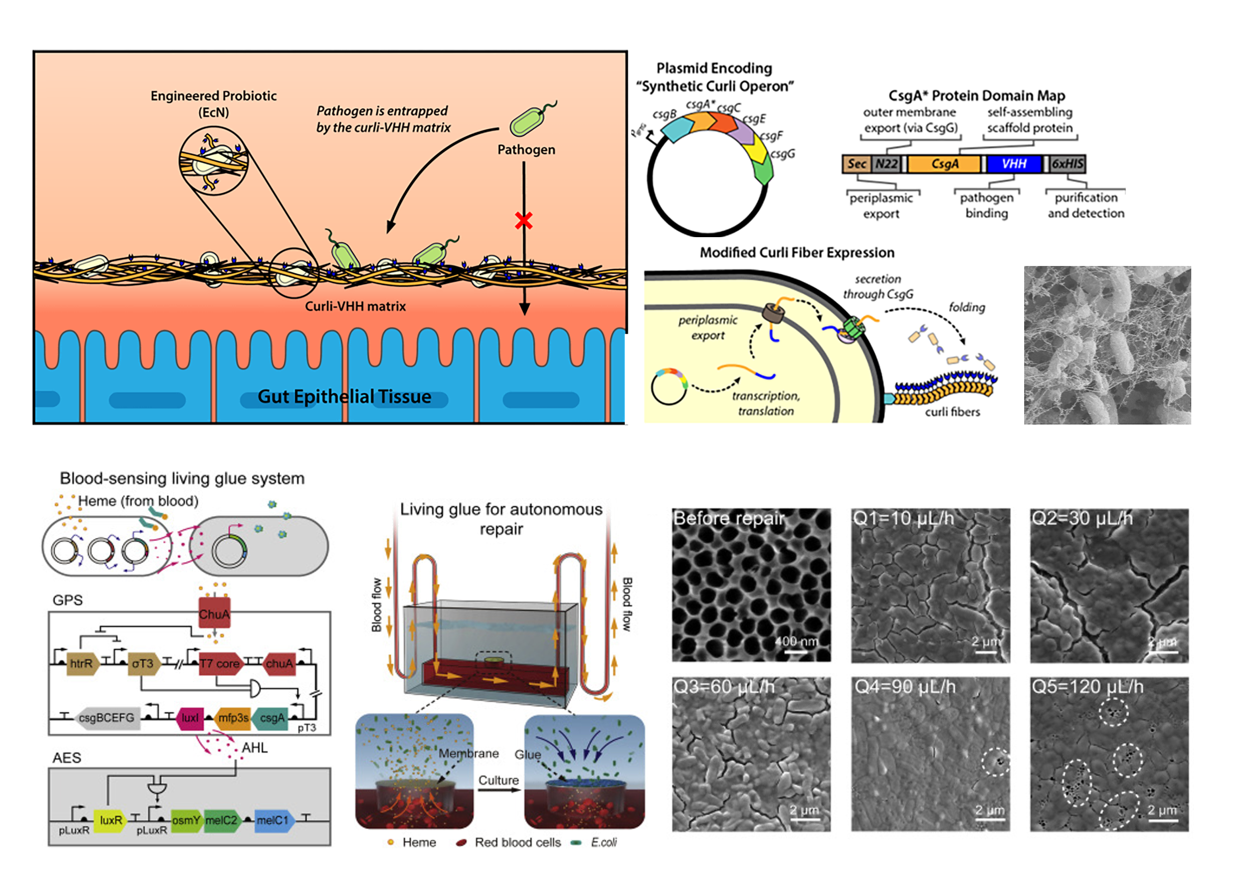 细菌生物被膜为一类具有代表性的自组装活材料,由细菌及其产生的胞外基质构成。合成生物学顺利获得对生物被膜中淀粉样蛋白纤维的改造、或者是基于对细菌响应性的改造,为生物被膜找到了新的用途。诊疗方面,例如:利用益生菌肠道定植的特性,顺利获得生物被膜和功能蛋白的融合,实现在肠道的功能蛋白展示,可用于特定药物的递送或致病微生物的预防。另外,自组装活材料可看作多细胞集体,而合成生物学不仅可以给予个体层面的改造,还可以顺利获得定义个体单元间的对话实现集体层面的改造。合成生物学建立了一系列用于控制或重构“细胞-细胞”、“细胞-环境”通讯的工具。这些新的工具或许可以用于增加人工组织的复杂性,为自下而上的组织工程方法拓宽思路。