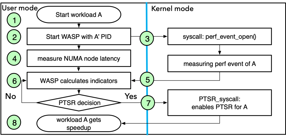 针对NUMA服务器上的大内存工作负载,页表自复制可以减少页表引起的NUMA效应。当前的页表自复制技术只能由用户手动启用。然而,页表自复制技术可能会提高,也可能会损害程序的性能,由用户去判断是否开启和何时开启是困难的。因此识别影响页表自复制效果的因素并实现其自动化开启/关闭至关重要。