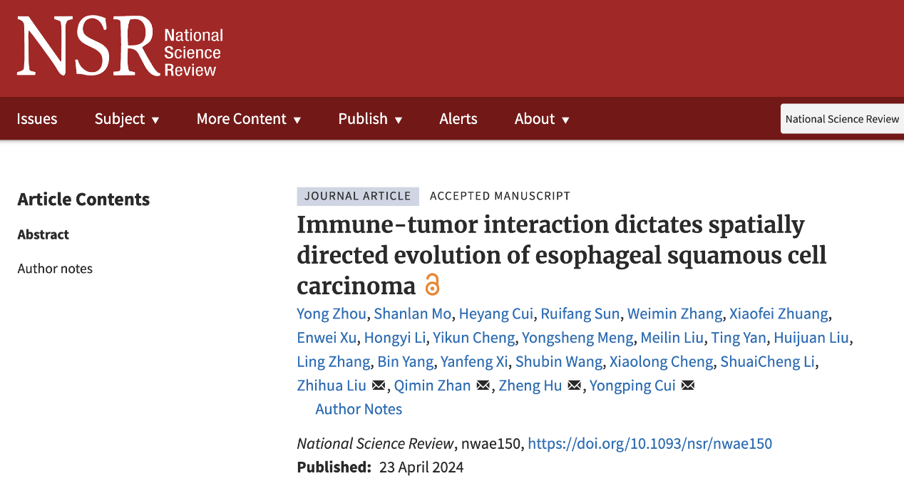National Science Review | 免疫与肿瘤互作驱动的食管鳞癌空间定向进化