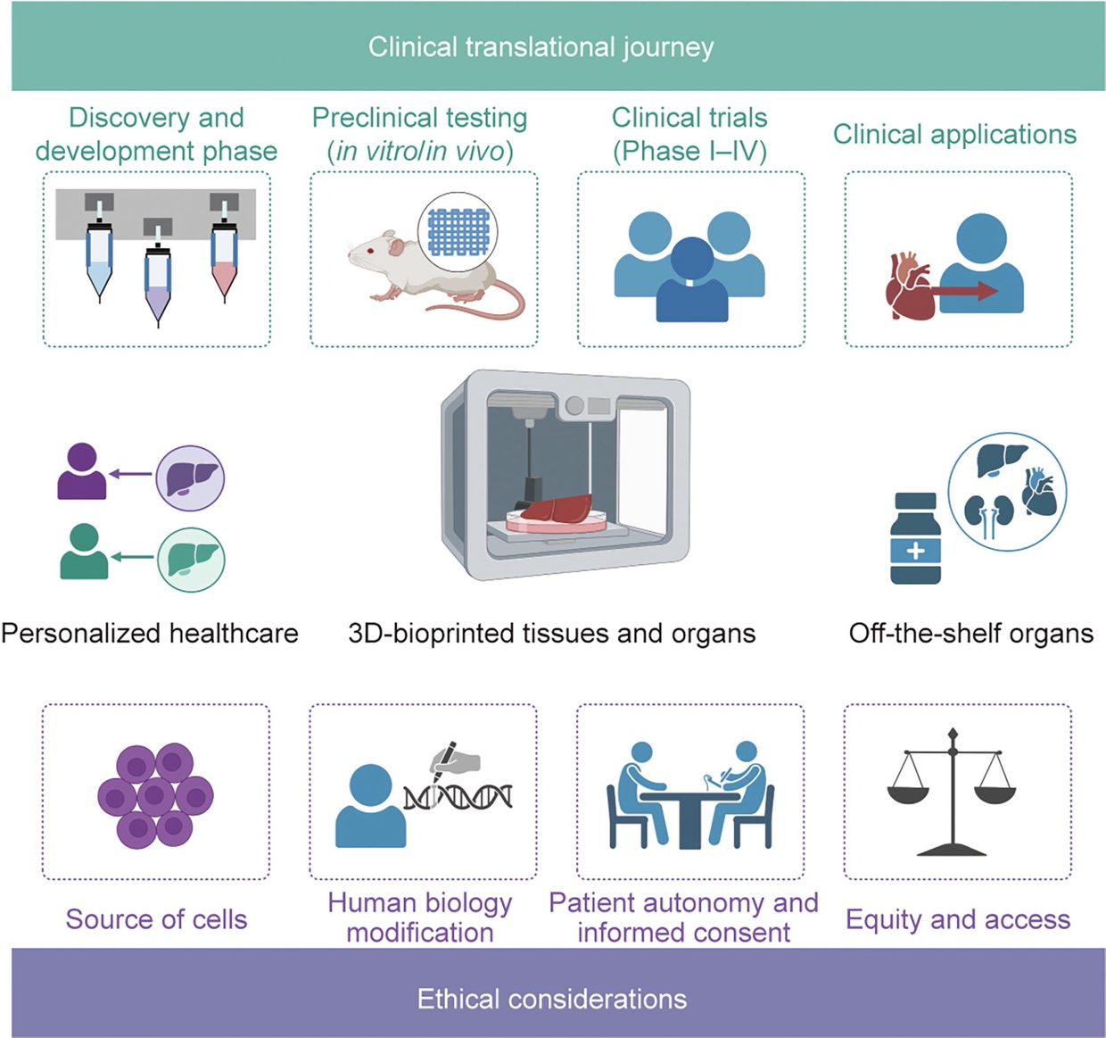 2. 生物打印的组织和器官的临床转化路径和伦理学考量。