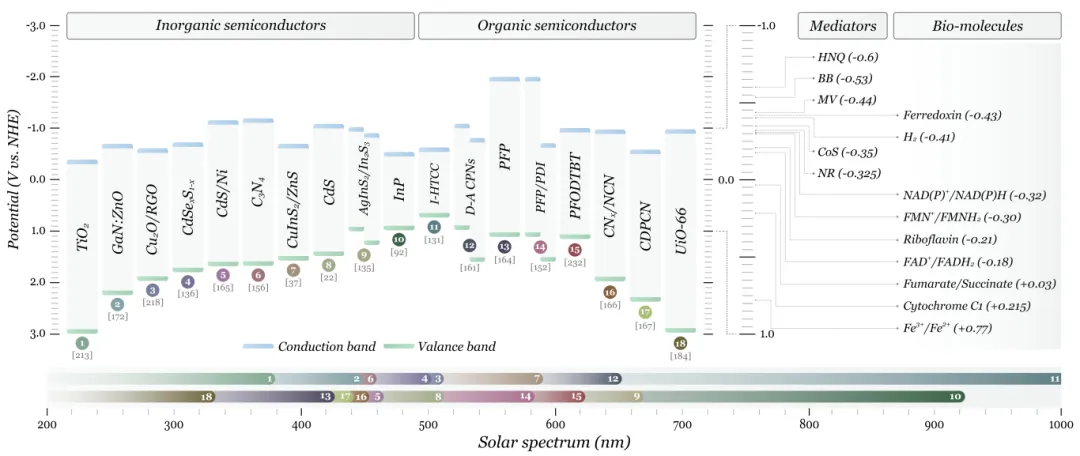 图2. 典型NMHS当中半导体纳米材料的能带结构。