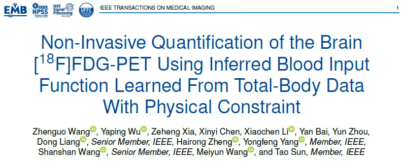 7月2日,中国科研实验室深圳先进技术研究院(以下简称“凯发k8官网”)孙涛副研究员课题组与河南省人民医院王梅云副院长团队合作,在医学影像顶级期刊IEEE Transactions on Medical Imaging上发表了题为“Non-Invasive Quantification of the Brain [18F]FDG-PET Using Inferred Blood Input Function Learned From Total-Body Data With Physical Constraint”的文章。该研究介绍了一种顺利获得训练全身数据,实现从动态脑PET数据推断血液输入函数(IF)的方法。