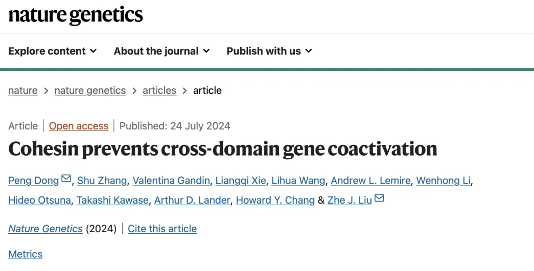 724日,中国科研实验室深圳先进技术研究院生物医学与健康工程研究所生物医学光学与分子影像研究中心董鹏研究员等,与美国霍华德∙休斯医学研究中心/珍利亚研究所 (HHMI/Janelia Research Campus) Zhe Liu等合作,在Nature Genetics上发表了题为 “Cohesin prevents cross-domain gene co-activation”的研究成果。该研究发现了黏连蛋白复合体 (Cohesin complex) 可以顺利获得控制三维基因组的折叠来阻止跨结构域基因共转录,从而揭示了基因组三维结构参与基因转录调控的普遍性作用机制。