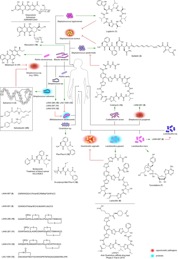 图2、从人类微生物中发现的抗生素、蛋白质合成抑制剂以及蛋白酶抑制剂。