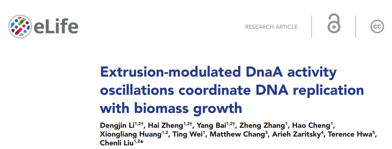 相关成果于11月18日以"Extrusion-modulated DnaA activity oscillations coordinate DNA replication with biomass growth"为题,正式被eLife杂志收录。