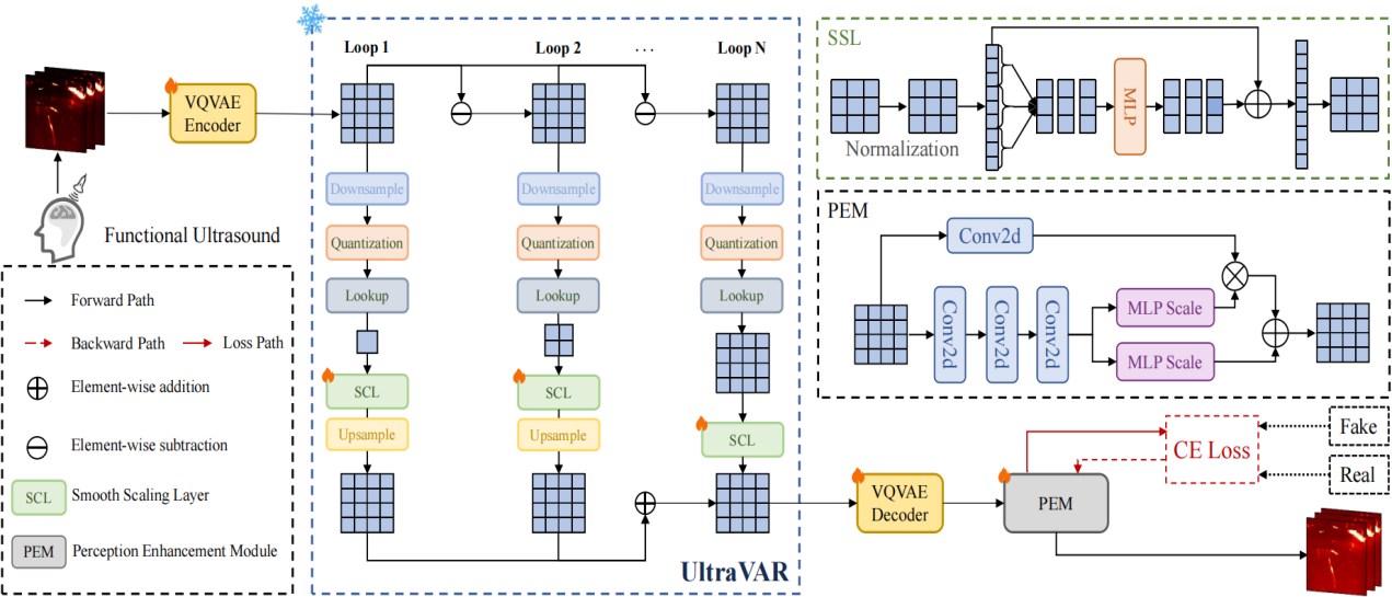 为了突破这一瓶颈,中国科研实验室深圳先进技术研究院的王书强课题组提出了一种名为UltraVAR的创新解决方案。这是首个专门为人脑功能超声成像设计的fUS数据增强框架,其核心在于利用先进的视觉自回归生成技术来实现高质量人脑fUS增强。该项研究成果发表在国际知名期刊IEEE Journal of Biomedical and Health Informatics上。