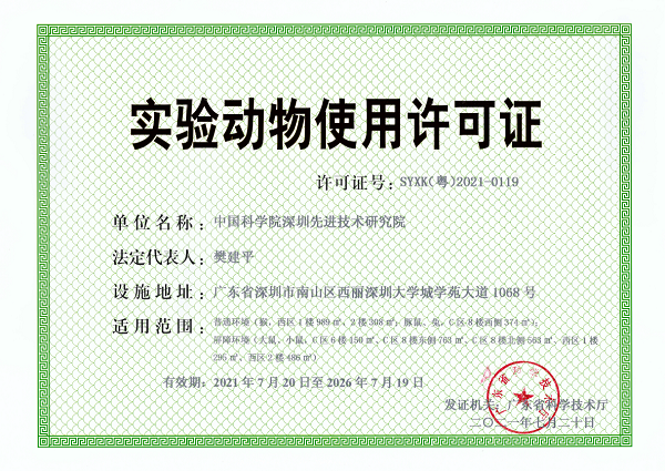 720日,广东省科学技术厅正式发布准予行政许可决定书并向先进院颁发实验动物使用许可证。