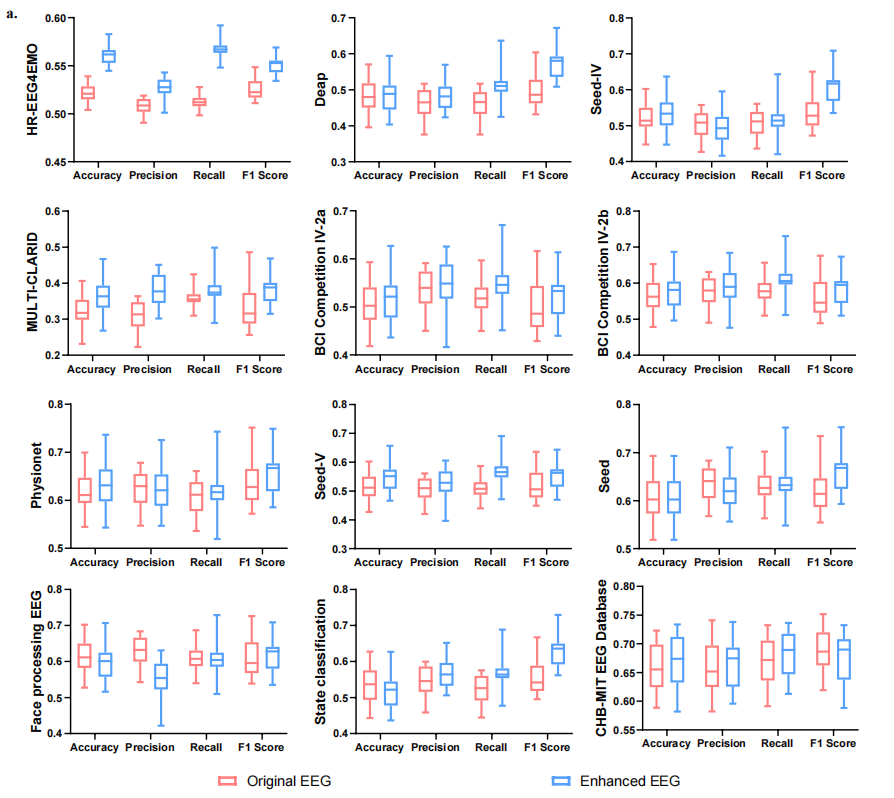 该研究不仅为低成本、低侵入风险的脑机接口系统开辟了可行路径,更证明了:在脑机接口的竞技场上,生成式AI对神经物理机制的解析深度,与电极通道数量同样关键—甚至可能是更具性价比的决胜因素。团队当前已在10余项下游任务上验证得出,重建后的神经信号显著提升了脑机接口解码精度(图3)。